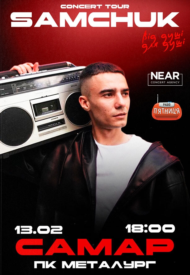 Samchuk состоится 13 февраля 2026, 18:00, пятница в ДК "Металлургов". С помощью сервиса internet-bilet.ua, Вы сможете с легкостью забронировать, заказать и купить билеты на интересующий Вас концерт, спектакль, оперу, балет, мастер-классы, спортивные и детские мероприятия, оплатив их самым удобным для Вас способом: через интернет банковской картой VISA/MasterCard, наличными или курьером, если сделаете заказ билета c доставкой.